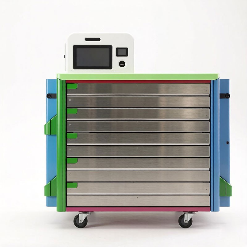 Storage Design: Multi-layer RFID smart drawers + side open shelving, enabling "closed + open" dual-zone storage.