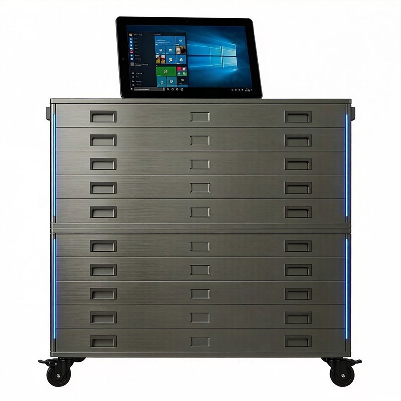 - **Real-time Intelligent Inventory:** Automatically identifies all drawings in the cabinet upon closing the door, generating an inventory report without manual verification.